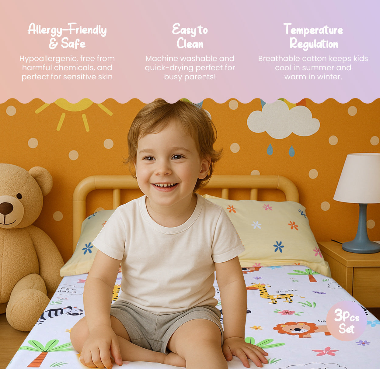 Elevate your sleep experience with this luxurious 100% long‑staple cotton, 300 thread‑count king-size sheet set. Expertly crafted for softness, breathability, and allergy-free comfort—ideal for every season and all sleepers.Perfectly sized for kings (270 × 260 cm) and paired with two pillowcases.
