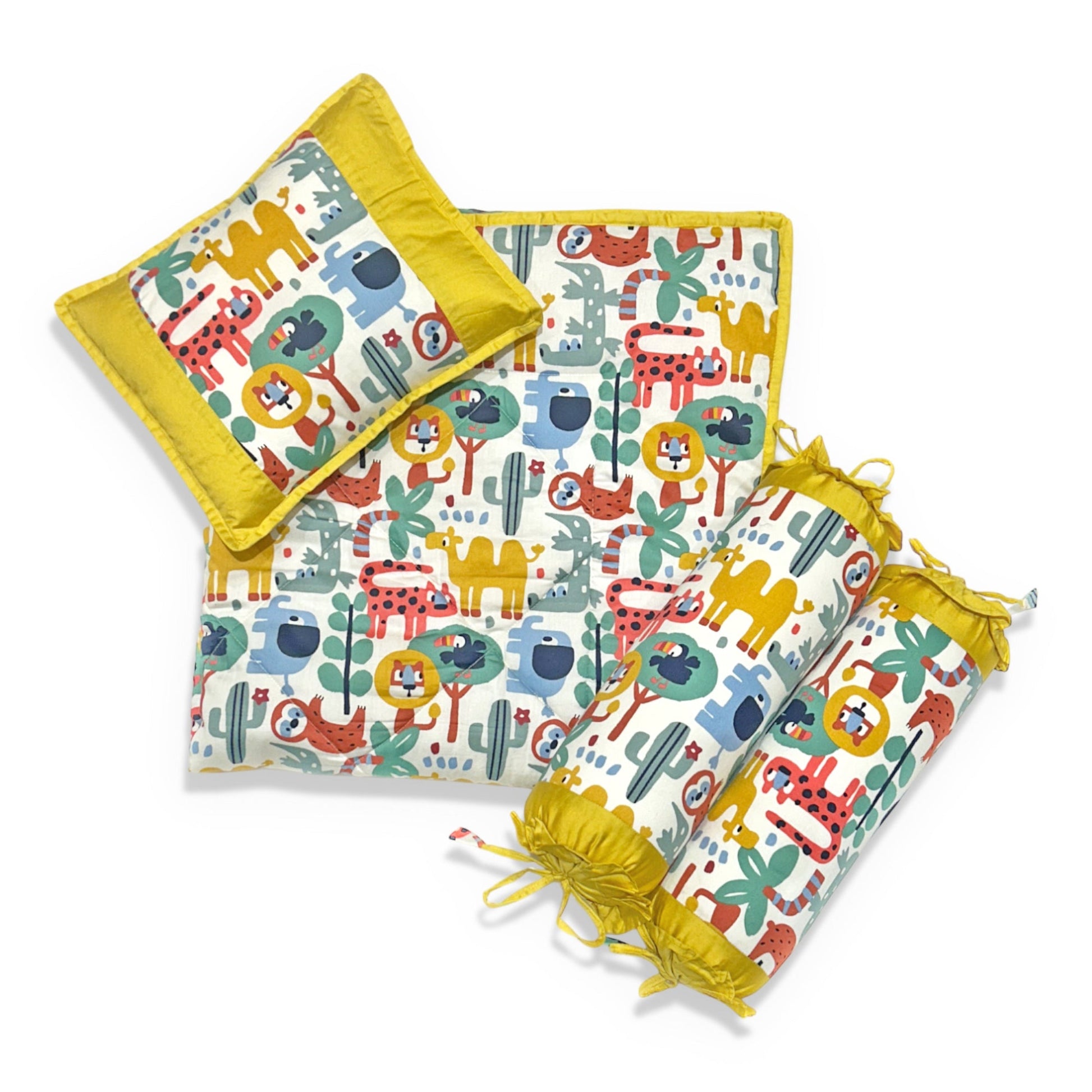 • 1 quilt + 1 pillow + 2 bolsters (Fillers included – ready to use)