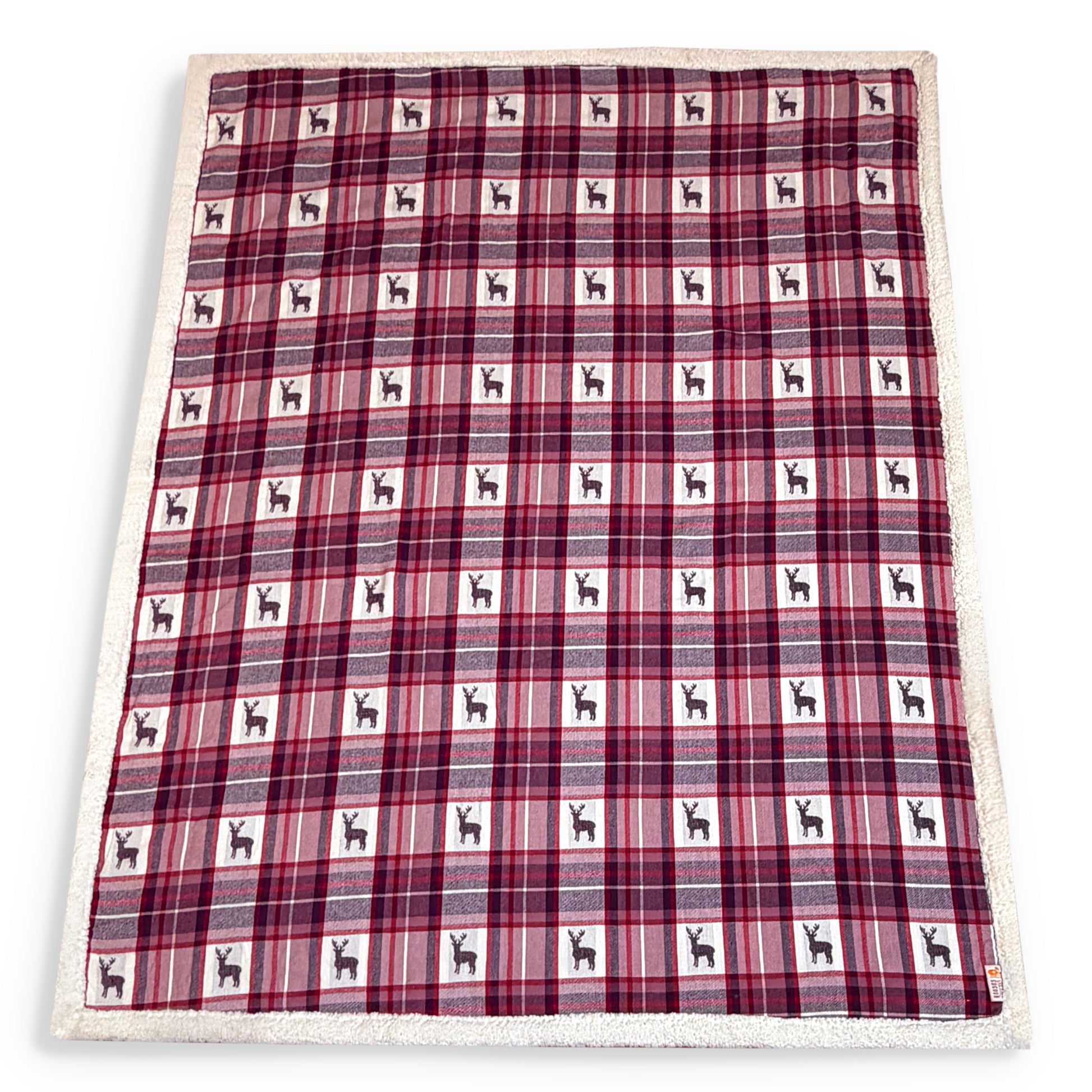 Stay warm and cozy this winter with our snugly blanket featuring a festive reindeer print on soft cotton flannel, backed with plush Sherpa for extra comfort. Perfect for kids, it’s ideal for chilly nights, offering both warmth and style. Use it as a throw on the couch or as a comfy blanket for bedtime—this winter essential is sure to keep your little ones cozy all season long.